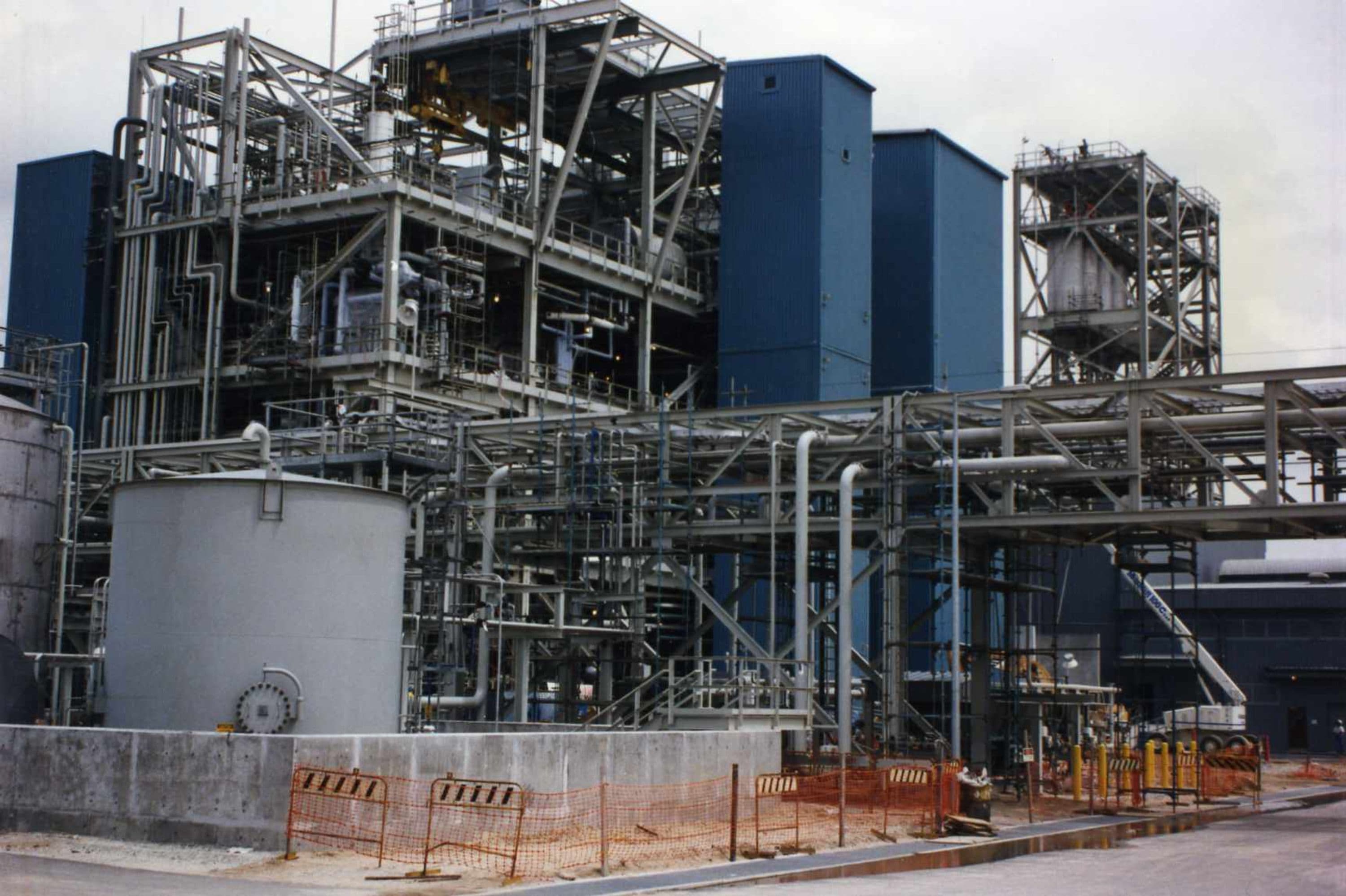 The facility was designed to produce 72 million pounds per year of an engineering-grade nylon 6,6 polymer, brand-named Zytel®. Five main process areas are located on the grassroots site: salt strike, continuous polymerization, finishing, packaging, and heat transfer areas. The two primary feedstocks are adipic acid and hexamethylene diamine.