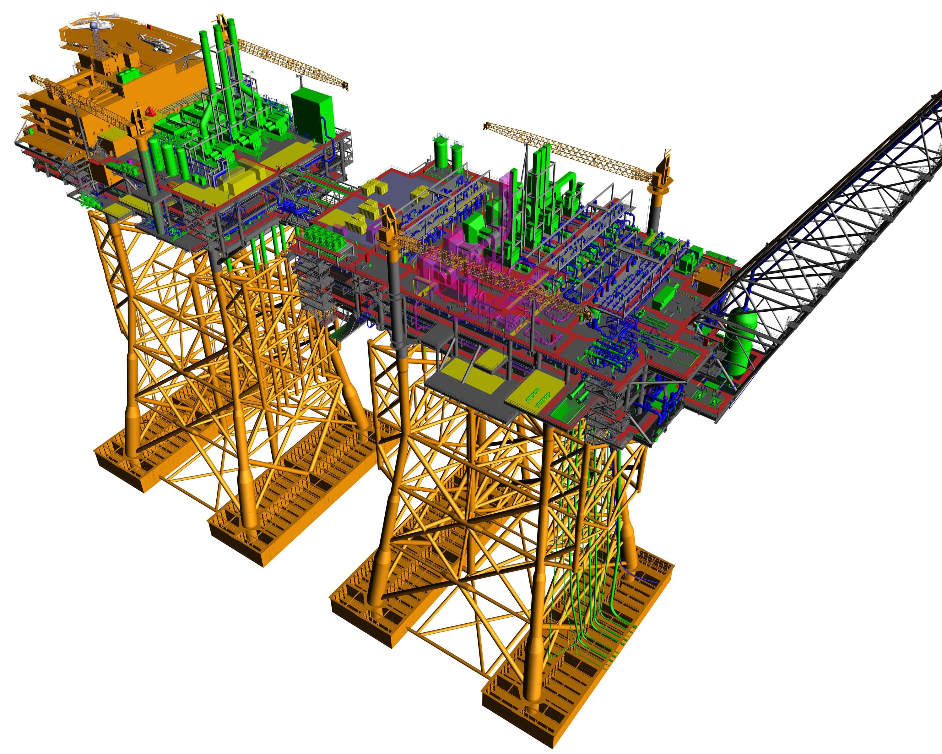 Designed as a two-year process, module construction took place in two phases, the first in May 1993, the second the following year. These modules were among the largest of their kind ever constructed. No slippage in the construction process was allowable with the short transportation window available each year. The project employed 1,800 people, the majority being craft personnel in New Iberia. Fluor furnished all labor, materials, tools, equipment and supervision.