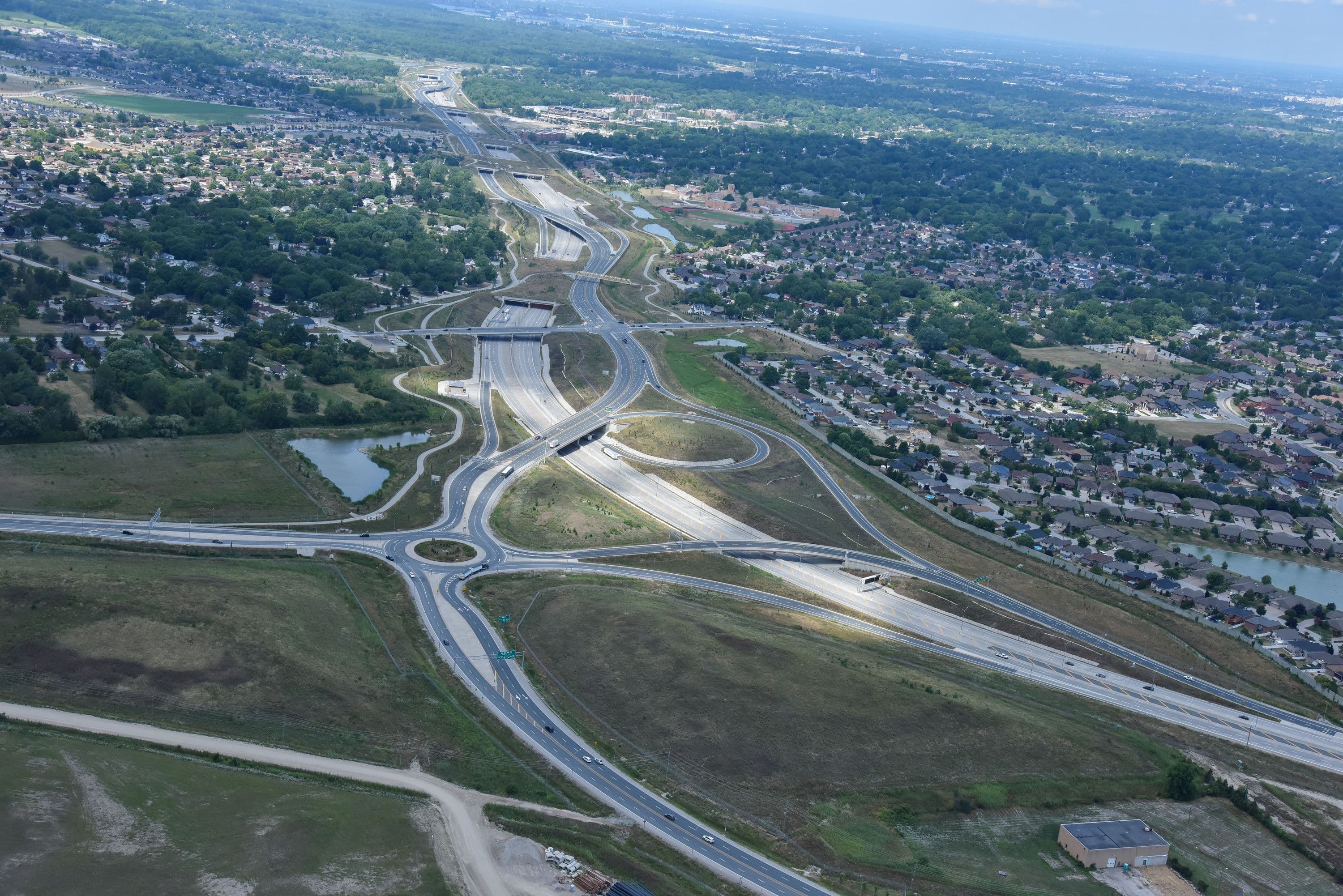 The Rt. Hon. Herb Gray Parkway includes an 11-kilometer, six-lane, below-grade highway featuring wide cut and cover tunnels, connecting bridges and earth-retaining structures. The Parkway is a publicly owned highway and does not have tolls. The Rt. Hon. Herb Gray Parkway will connect to new inspection plazas, the Gordie Howe International Bridge and the U.S. Interstate system. The project also includes construction of surrounding highways, interchanges, local service roads and multi-use trails.